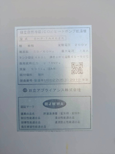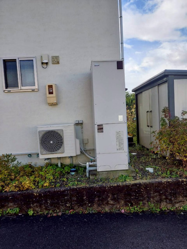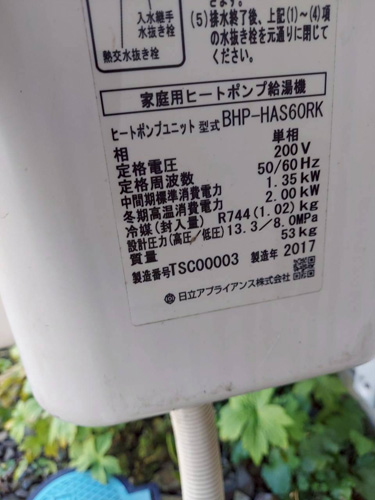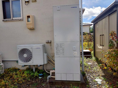 五泉市赤海 日立家庭用ヒートポンプ給湯機ヒートポンプユニットBHP-HAS60RK、自然冷媒CO2ヒートポンプ給湯機BHP-TA462K→コロナ自然冷媒CO2家庭用ヒートポンプ給湯機ヒートポンプユニットCHP-DZ451K エコキュート交換工事