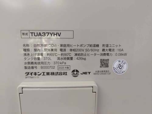 阿賀野市沖 ダイキン自然冷媒CO2・家庭用ヒートポンプ給湯機 ヒートポンプユニットRQW45YHV、貯湯ユニットTUA37YHV エコキュート交換工事