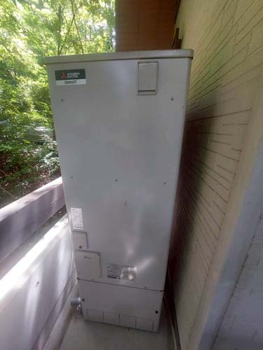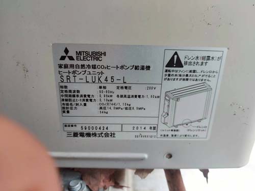 阿賀野市沖 三菱電機家庭用自然冷媒CO2ヒートポンプ給湯機 ヒートポンプユニットSRT-LUK45-L→ダイキン自然冷媒CO2・家庭用ヒートポンプ給湯機 ヒートポンプユニットRQW45YHV、貯湯ユニットTUA37YHV エコキュート交換工事